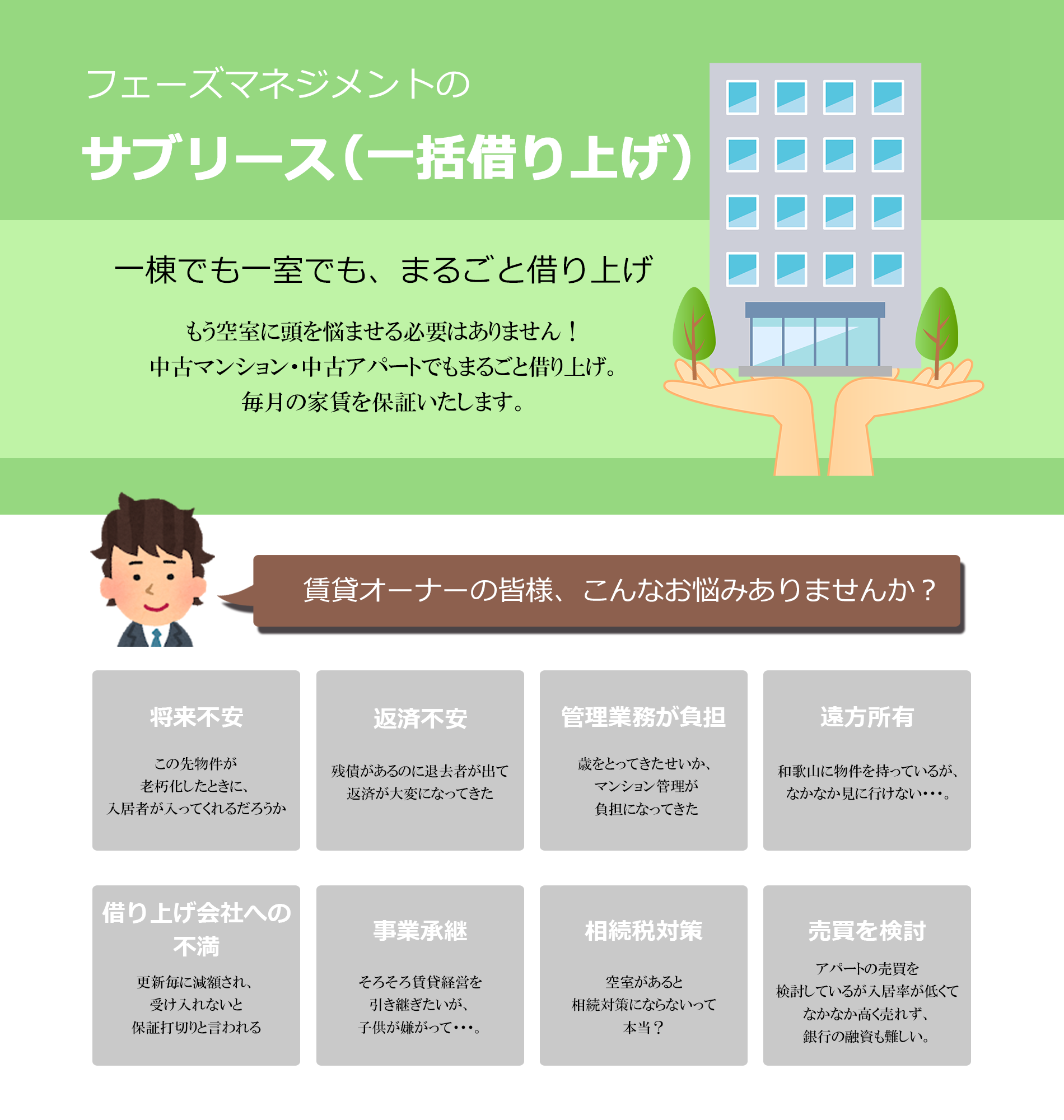 当社では1棟でも1室でもサブリースを行っております。