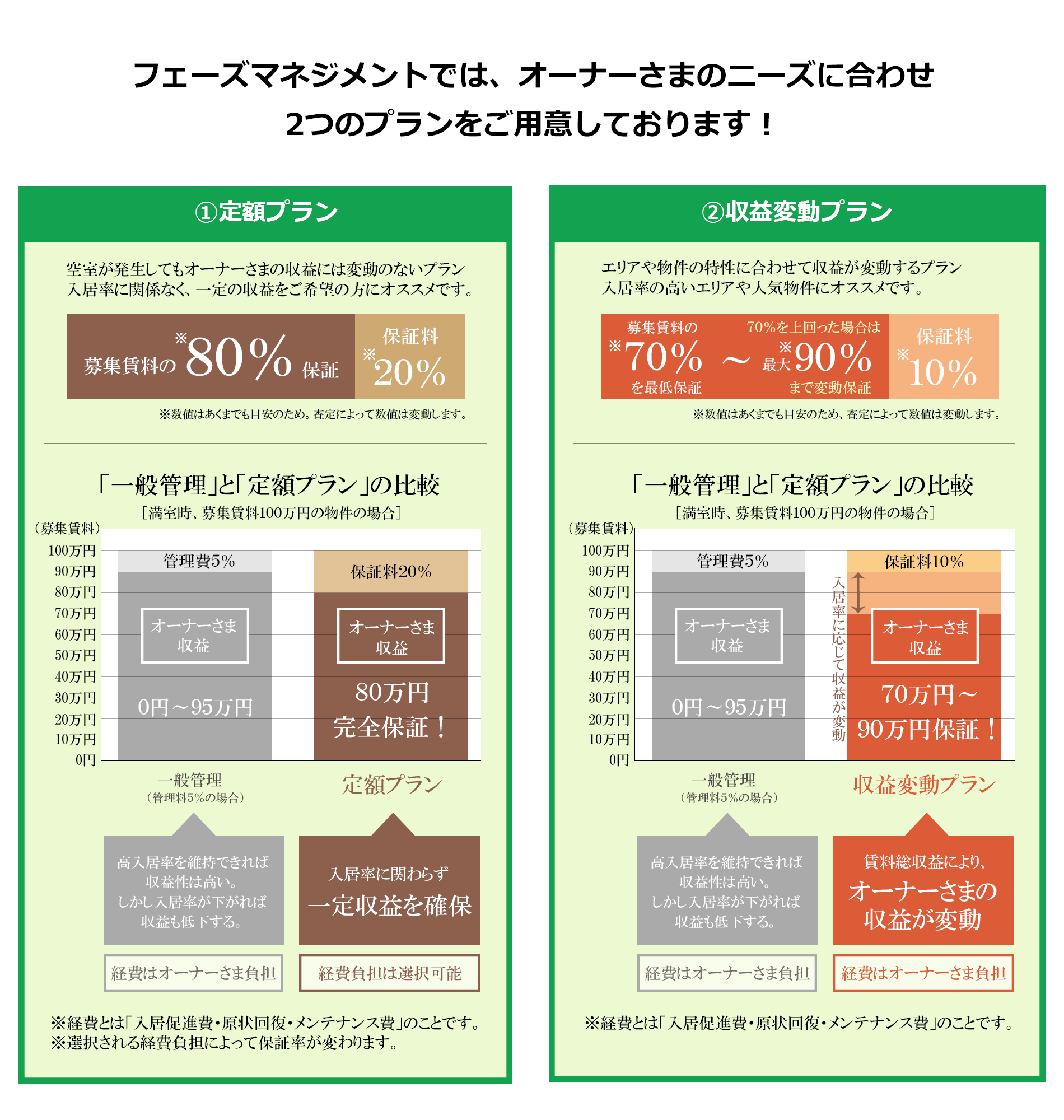 そこから「サブリース<定額プラン>」、「サブリース<収益変動プラン>」の保証料が決定します。